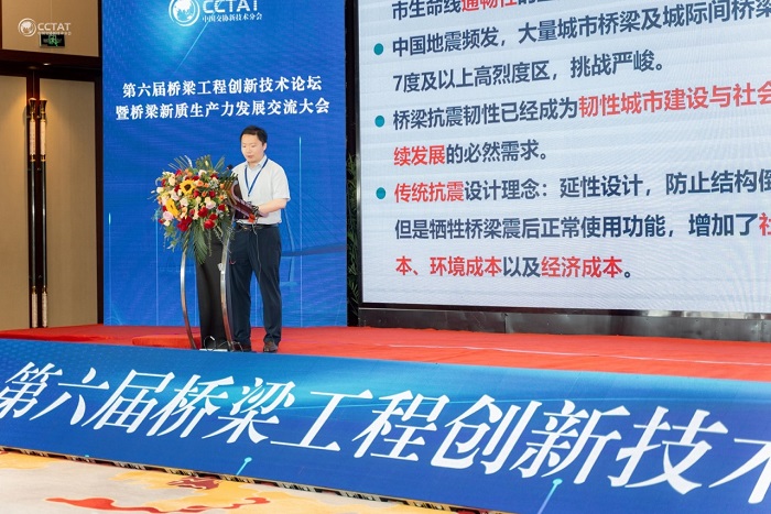 5月24-25日,由中国交通运输协会新技术促进分会主办的第六届桥梁工程创新技术论坛暨桥梁新质生产力发展交流大会在江苏省常州市召开。公司工程技术研究院院长余顺新、桥梁设计院院长丁少凌分别受邀主持了中国交通运输协会团体标准宣贯会和第六届桥梁工程创新技术论坛,专业总师李睿鹏受邀作了题为《新型高性能自复位桥梁设计与应用》的学术报告。